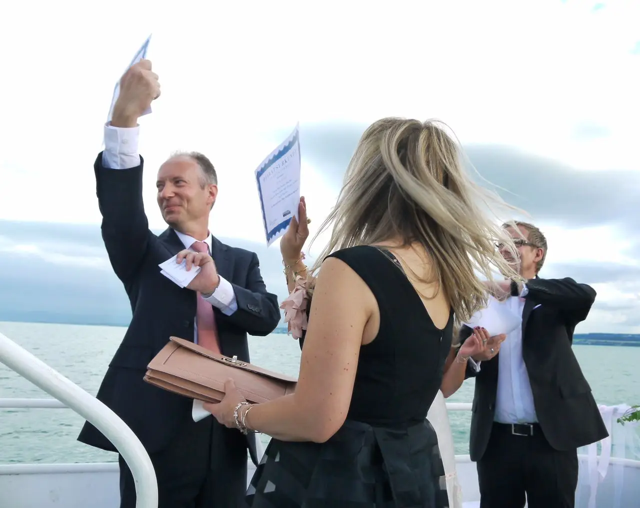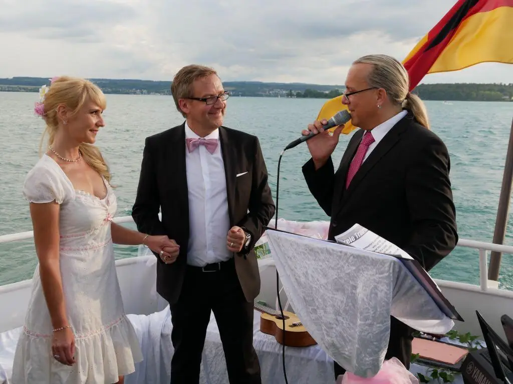 Katja & Klaus feierten ihre freie Trauung auf dem Bodensee – offiziell nicht ganz „hohe See“,