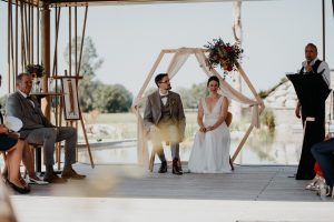 Die Planung wurde dann super umgesetzt. Tom macht nicht nur eine tolle Trauung, er singt auch unglaublich gut und hat alles drum herum im Griff. Er kümmert sich um die Gäste, das Brautpaar, den Ablauf der Veranstaltung und die Technik und wenn Not am Mann ist hilft er auch bei den Getränken