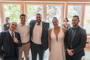 Kurz gesagt: stets sympathisch und mit Charme ist er von Anfang bis Ende für das Brautpaar und die