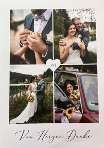 „Lieber Tom, wir möchten uns nochmal von ganzem Herzen bedanken, dass du unseren großen Tag zu einem der schönsten in unserem Leben gemacht hast. Wir sind immer noch sprachlos, wenn wir an unsere Hochzeit zurück denken. Danke für das unkomplizierte Kennenlerngespräch, deine perfekte Liedwahl beim Einzug von mir und meiner Familie und deine persönliche aber auch gefühlvolle Traurede. Ebenso möchten wir uns bei dir und deiner eingespielten Band bedanken, die jedem Liedwunsch nachgekommen ist.“